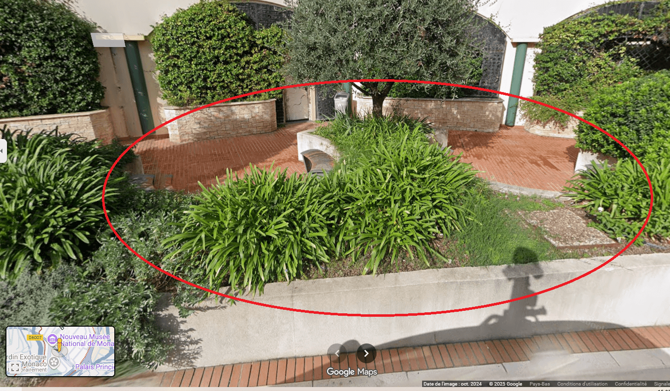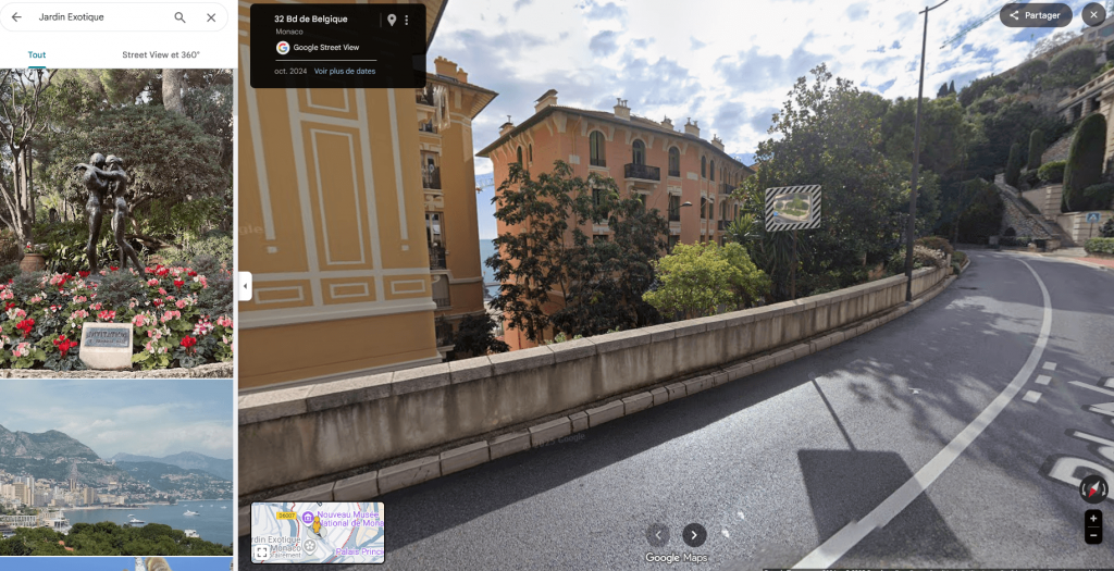 Une recherche sur Google Maps avec le terme » Jardin Exotique Monaco » nous mène au lieu exact de la photographie