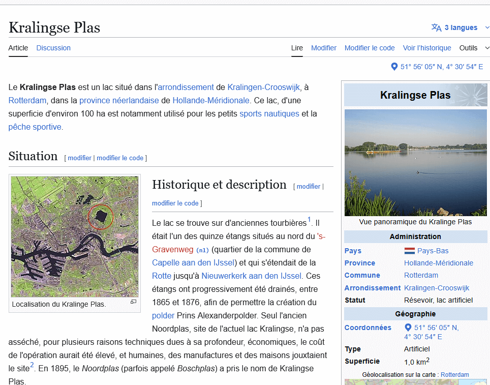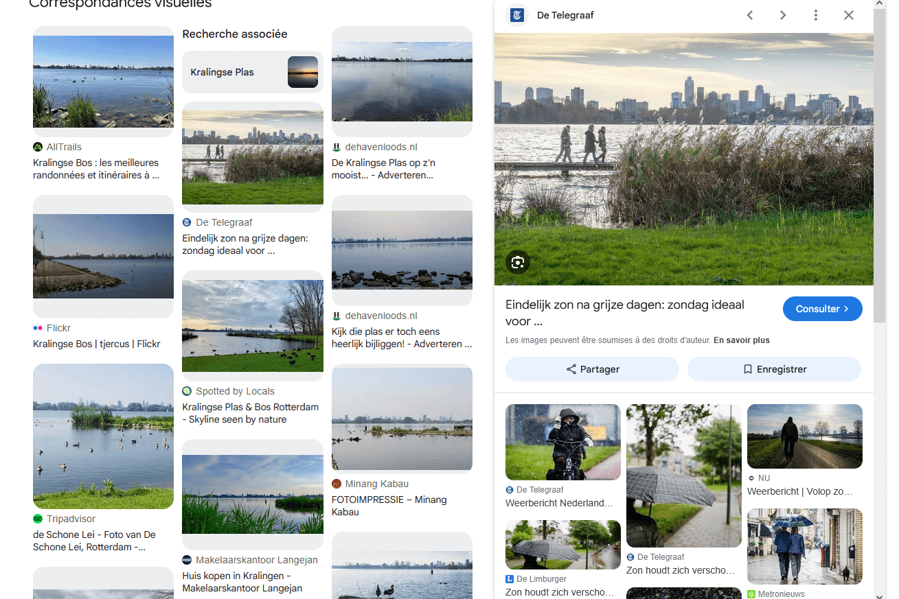 Une localité est mentionnée dans plusieurs résultats : un lac du nom de « Kralingse Plas ».