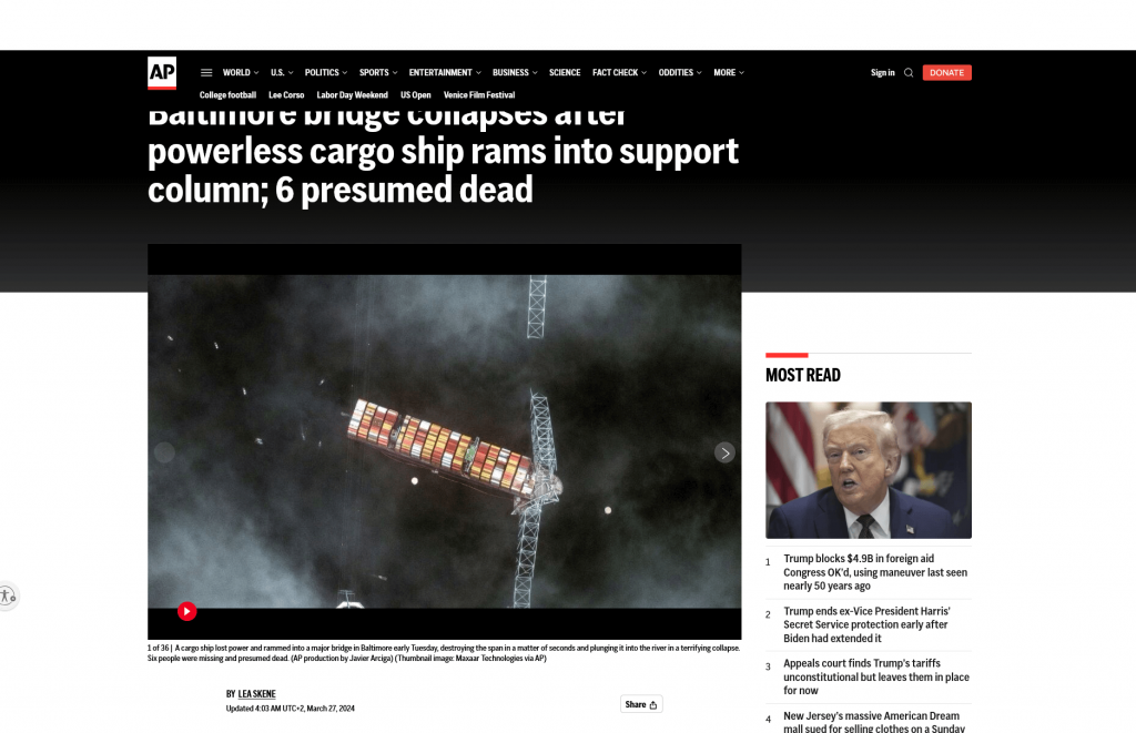 »AP NEWS » a été le premier média à relater les faits via un article de presse.